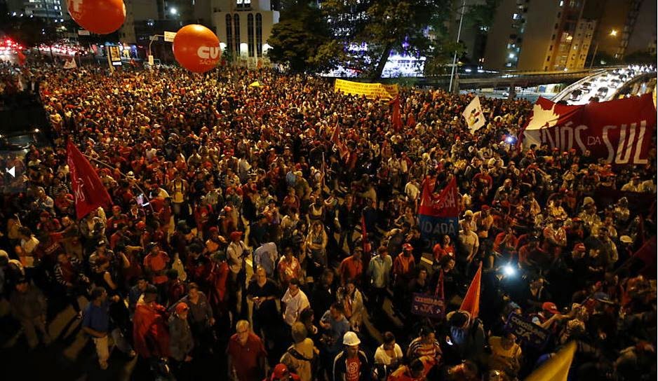 Prensa Latina - Grupos sociais e sindicatas marcham na cidade de São Paulo para rechaçar os chamados a derrubar pela força a reeleita presidenta brasileira, Dilma Rousseff, e em prol das reformas do atual sistema político.