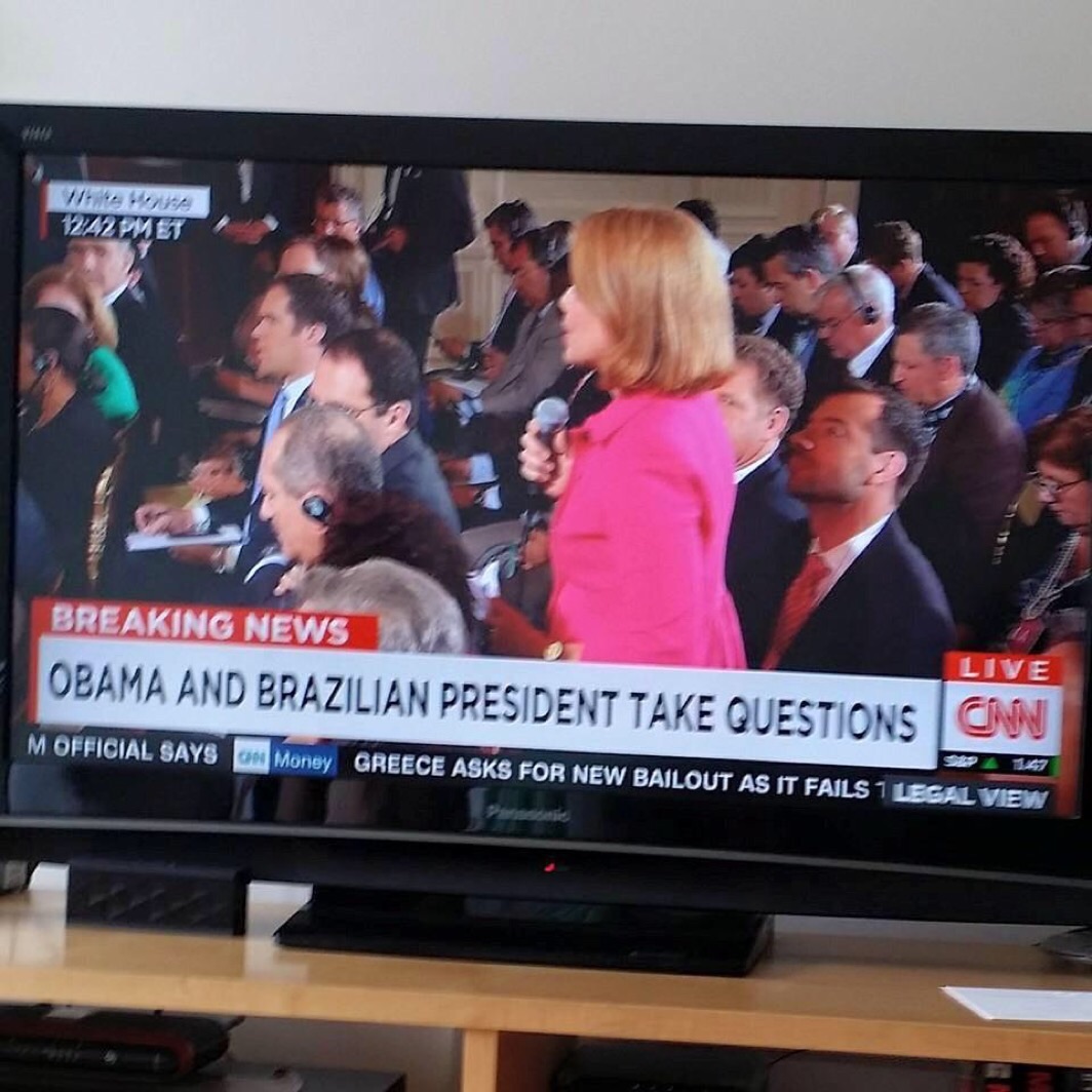 “Muita emoção conseguir fazer uma das quatro perguntas da coletiva de Dilma e Obama!”, escreveu.