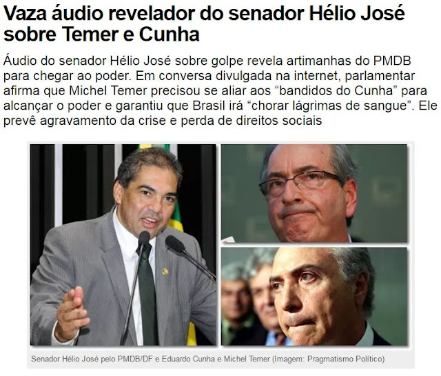 OUÇA AS PALAVRAS DE UM DOS GOLPISTAS DO PMDB: O RETROCESSO "PÓS-GOLPE" CONDUZIRÁ O BRASIL PARA A MAIOR DESGRACEIRA SOCIAL!